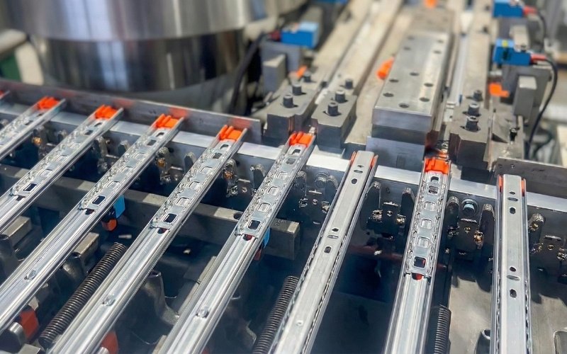 Endüstriyel teleskopik raylar, ağır yükleri bilyeli mekanizma sayesinde dengeli şekilde taşır. Bu tasarım sayesinde yük tek noktaya binmez, tüm ray boyunca dağıtılır.
