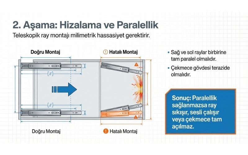 2. Teleskopik Ray Montajında Ölçü ve Hizalama Hataları